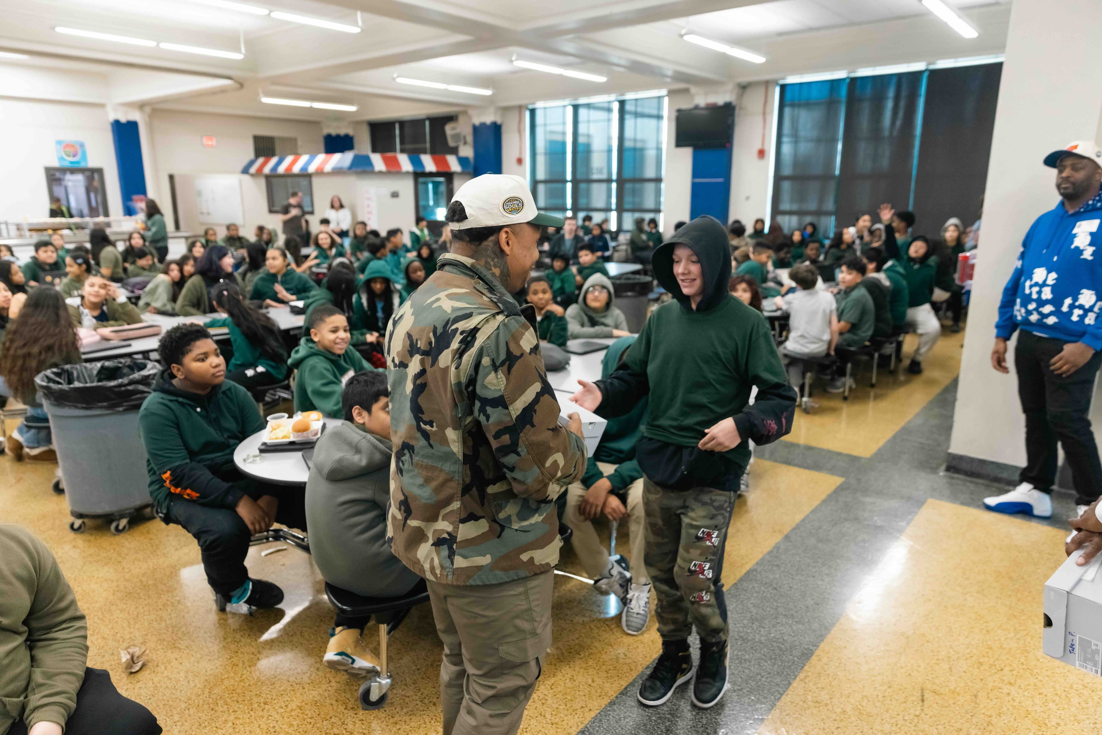 This event was more than just a milestone; it was a powerful statement of growth and commitment. Typically, Touching Soles provides 30 pairs of sneakers at each giveaway, but this time, they doubled the impact—gifting 60 pairs of brand-new sneakers to deserving students. In total, the event reached 800 students, ensuring that not only the recipients but the entire school felt supported and valued.